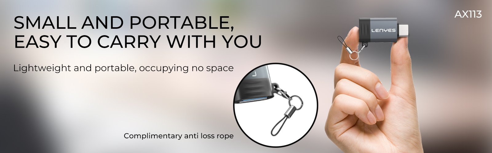 It has a sleek, all-metal body with a keyring-compatible lanyard.