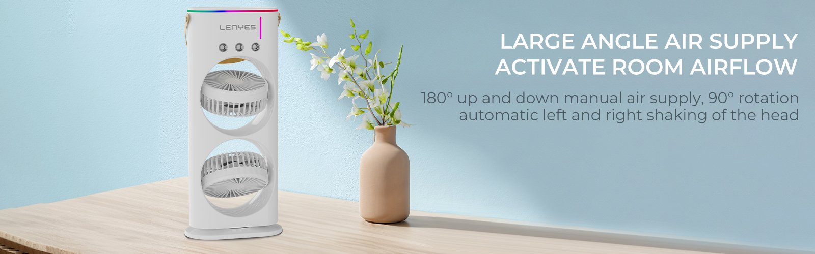 Beat the heat with the Lenyes LHF03 Tower Dual Fan, designed to deliver powerful and efficient airflow for your home or office. Featuring dual 45mm fans and three adjustable speed settings, this compact tower fan lets you personalize your cooling experience with ease.