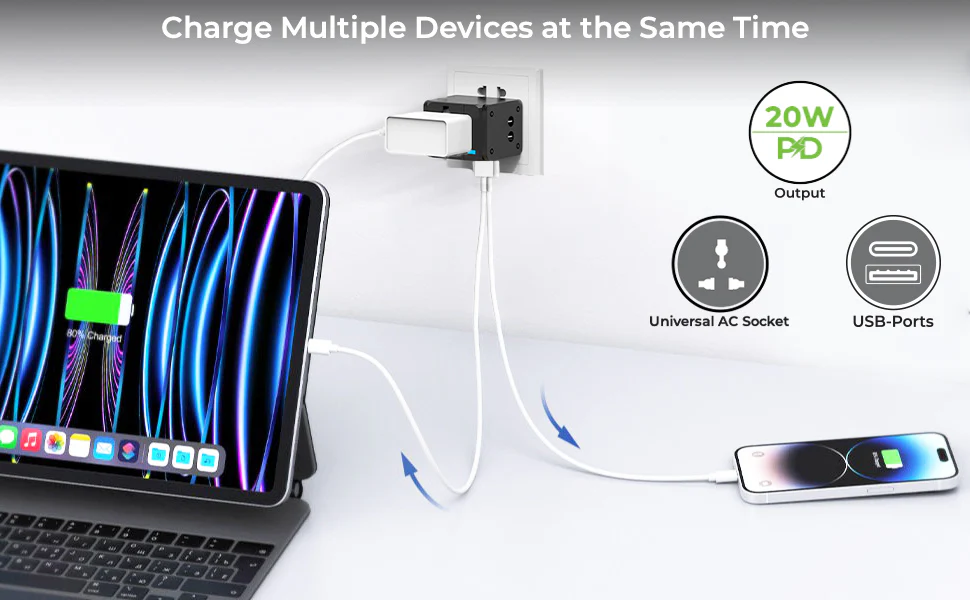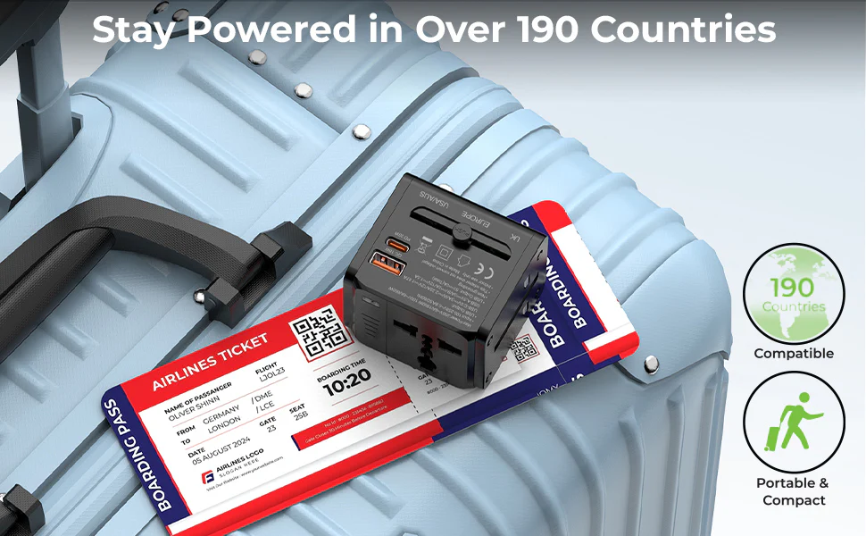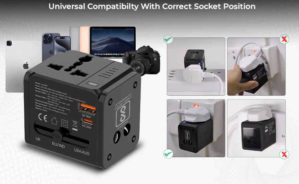 Slimmest Universal World Travel Adapter cum charger-Travel Mate PD20W | Charges iPhone 15/16 , 50% in just 30 minutes.UM1189