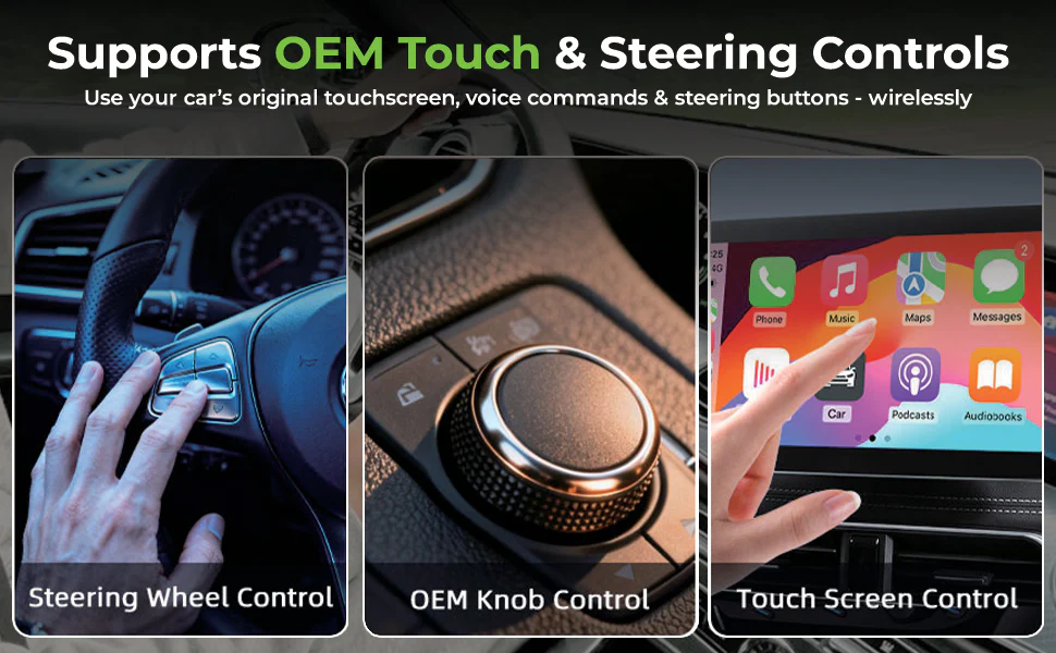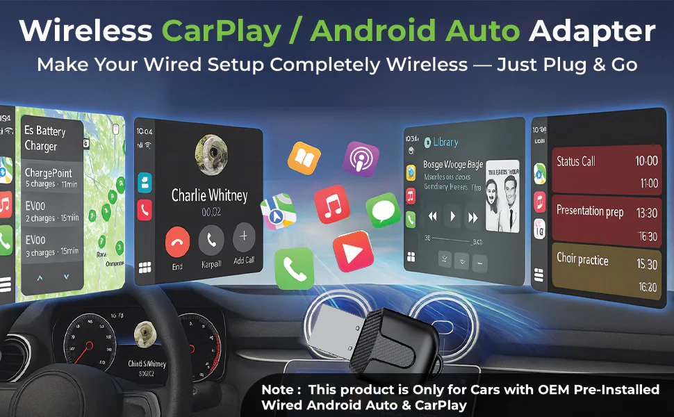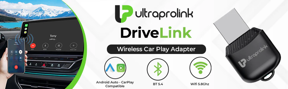 Transform your existing wired Android Auto or Apple CarPlay system into a fully wireless experience. The UltraProlink DriveLink wireless car adapter connects via your car’s OEM USB port, eliminating the need for cables. Enjoy instant hands-free connectivity for navigation, music, and calls — perfect for modern, clutter-free driving. Note : This product is Only for Cars with OEM Pre-Installed Wired Android Auto & CarPlay. Limited models of BMW support wired CarPlay & Android Auto – Kindly verify this in your car manual. Designed with minimalism in mind, this 2-in-1 wireless car receiver features a sleek, compact form factor that blends seamlessly into your dashboard. Its lightweight build ensures easy portability while maintaining a premium aesthetic fit for any vehicle.