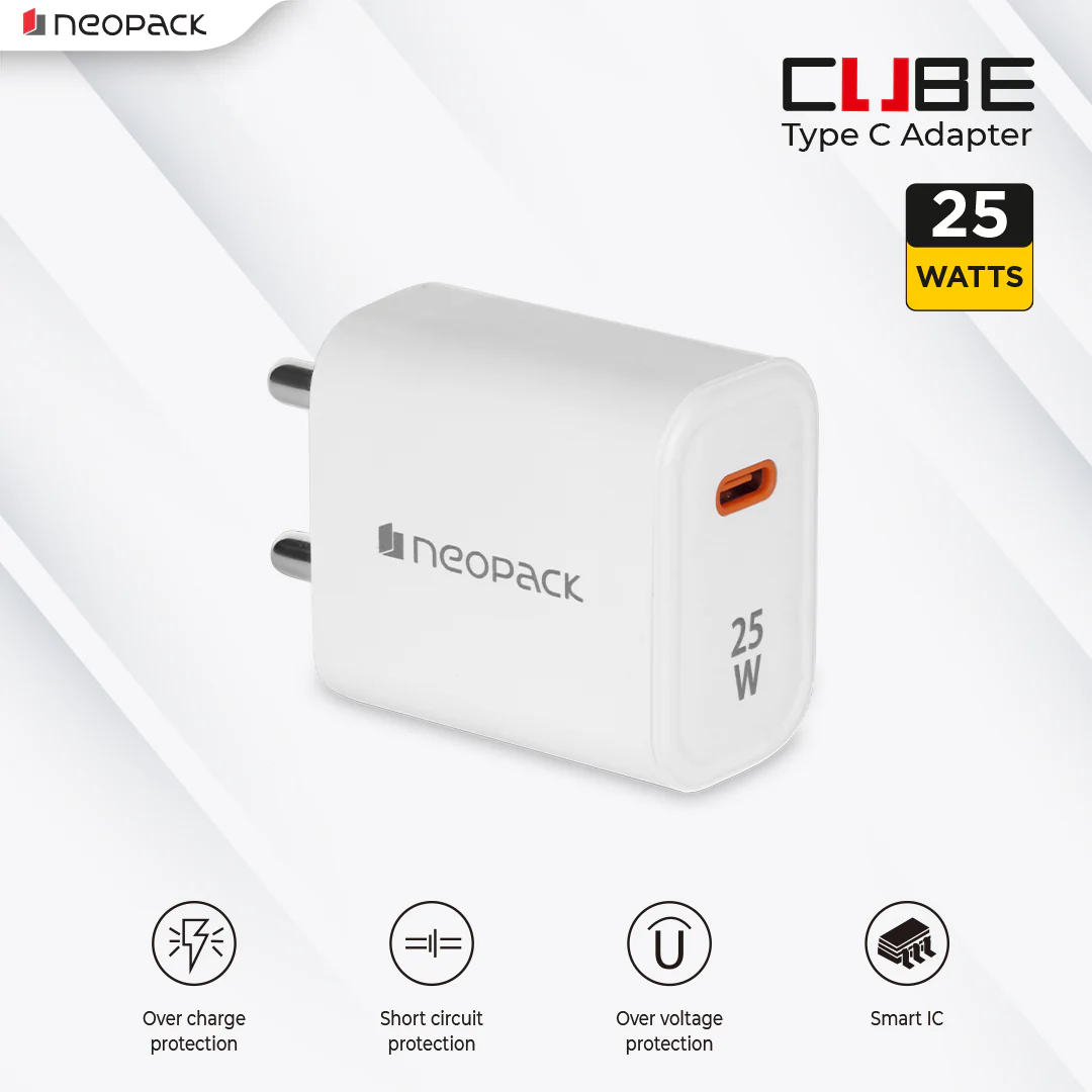 Power Cube 25W Fast Charging Adapter for Smartphones / iPhone, Tablet IOS / Android, Power Banks, Earbuds and Other USB-C Devices