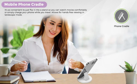 It’s so convenient to just flip it into a stand so you can watch movies comfortably or simply charge your phone while you travel. Allows for hands-free viewing in landscape mode.