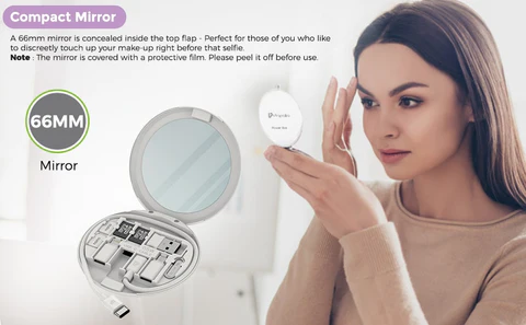 A 66mm mirror is concealed inside the top flap - Perfect for those of you who like to discreetly touch up your make-up right before that selfie. Note : The mirror is covered with a protective film. Please peel it off before use.