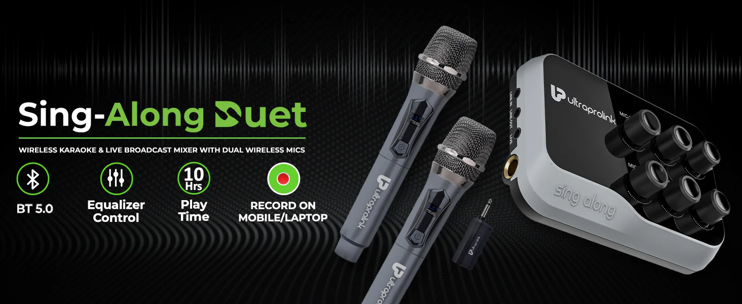 Sing-Along Duet Wireless Karaoke & Live Broadcast Mixer with Dual Wireless Mics