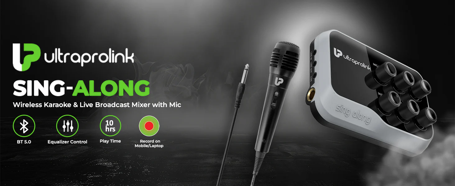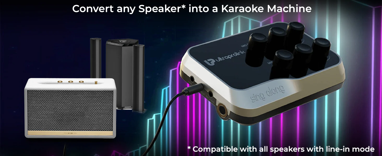 Bring life to gatherings with the Singalong Portable Universal Wireless Karaoke mixer. Amplify the sound by Connecting it to any speaker, amplifier, home theater using the provided audio cables to the Line-Out Port. Make your kids' birthday parties fun with this karaoke mixer. Monitor audio privately with headphones/earphones or amplify the sound through external speakers.