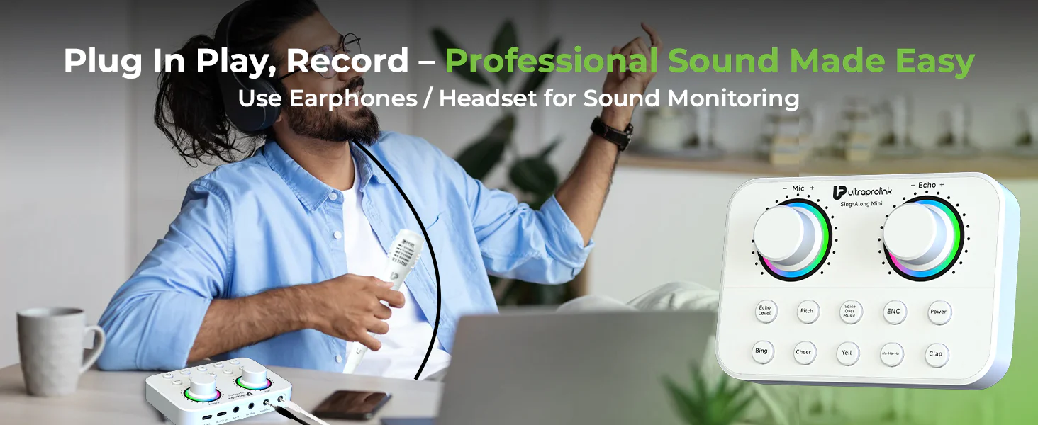 Customize your sound with Echo Controls for professional-quality audio. Enjoy 5 sound effects like Clap, Cheer, Laughter, Bing & Yell, to enhance creativity and excitement in your performances. The upda Pro-Users can use functions like pitch change, ENC & monitor their sound via earphones or headsets .