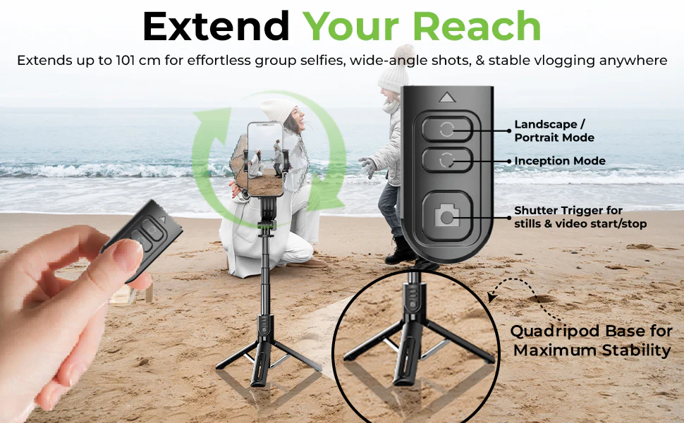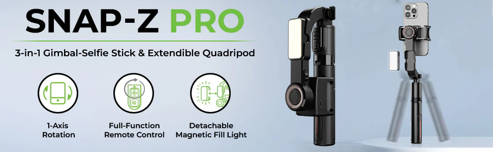 Snap-Z Pro | 3 in 1 Gimbal-Selfie Stick & Extendible Quadripod