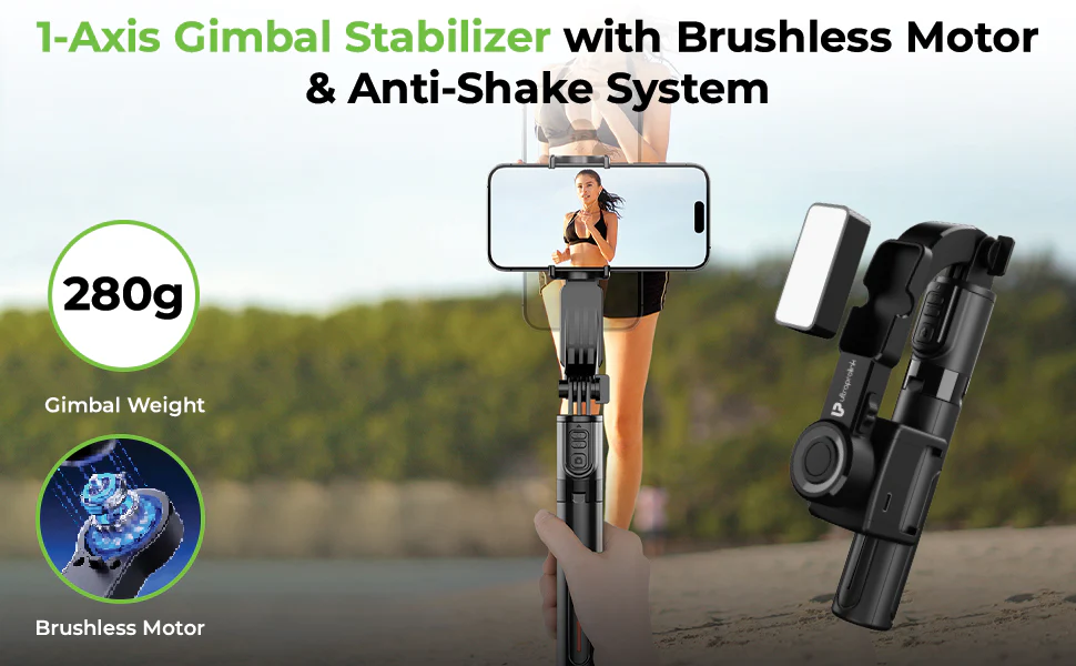1-Axis Gimbal Stabilizer with Brushless Motor & Anti-Shake System :