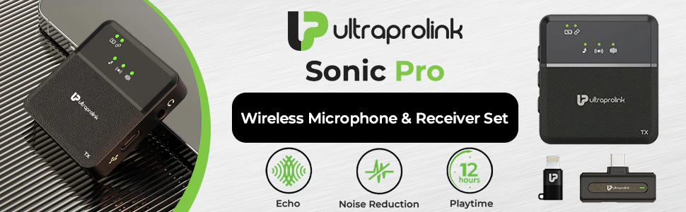 UltraProlink Sonic Pro features a professional collar mic with an easy clip-on design and automatic pairing. Just plug into the receiver for instant connection. No adapter or Bluetooth needed. Ideal for live broadcasting, vlogging, podcasts, YouTuber kits, Facebook Live, Insta Live, and TikTok.