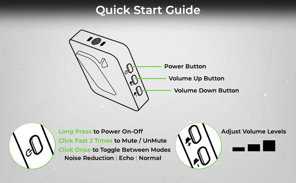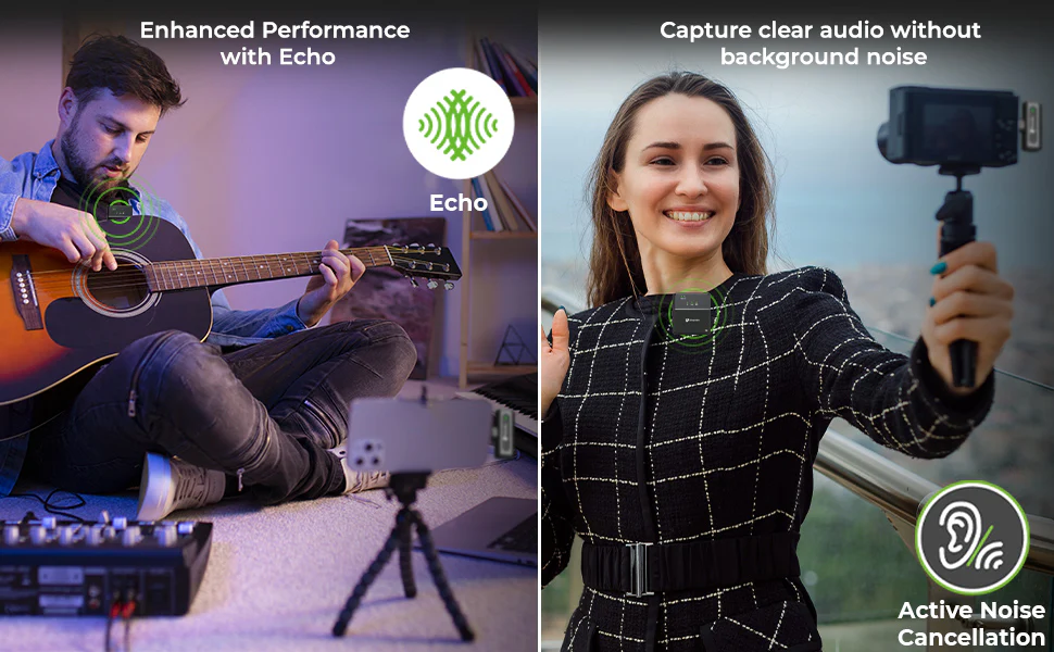 Capture every detail with the 360° omnidirectional mic, featuring intelligent active noise reduction, mute, and echo functions. Ideal for Lavalier, clip-on, and collar mics, ensuring professional audio quality for any environment.