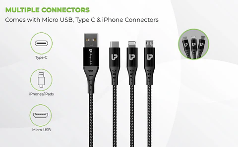 This 3in1 cable has an optimal length of 1.5m /150cm so that you can access your device with ease & charge at the same time. Connect effortlessly to any compatible device with quick charge support of 3A/18W. Now charge upto 3 devices at the same time each device receiving 1A of current. A unique and convenient way to charge while traveling, the 3-in-1 charging cable brings in a new, innovative and quality charging experience to users with the high functionality of charging multiple devices conveniently at the same time while traveling or at home or at office.