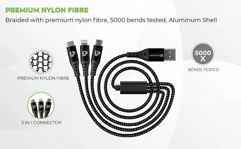 TrioLink 18 W 3in1 Fast Charging Cable (1.5m/Black)