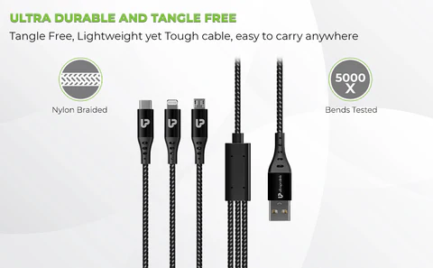 Premium and lightweight constructions to ensure pain free and comfortable usage for power users. The cable is braided with premium nylon fiber which lasts longer than PVC ones. Its tough outer flexible design offers the user a tangle-free experience. No more worry of cable breakage or durability issues thanks to nylon braided outer covering.