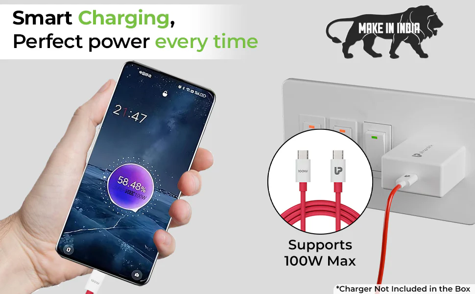 VoLo 100 Type C fast charging cable for One Plus charger supports latest fast charging protocols like VooC, SuperVooc , Super Dart, Warp, Dash & Dual Engine fast charging of upto 100W. It is also backwards compatible with older generation phones which require lower outputs of 80W / 65W / 30W/25W/18W. It’s the perfect original replacement cable.