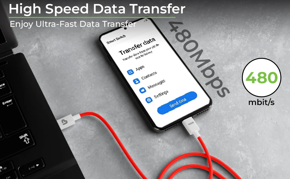 Enjoy ultra-fast data transfer speeds along with charging capabilities at speed of 480Mbps. Sync files, transferring photos, or updating software, seamlessly with efficient connectivity every single time. It saves a lot of time when transferring data such as files, photos, music, movies, videos, etc. between your phone and other Laptop.