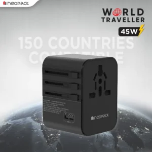 World Traveller Plus Adapter 45W with India Plug Compatible Sockets, 3 X USB-C PD + 1 X USB A Port, All in One Worldwide for USA, EU, UK, AUS