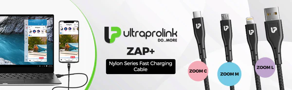 The new ZAP+ series from UltraProlink is the smarter & faster way to charge. Available in Micro USB, Type C & iPhone connectors, these are the only fast charging Cables you will ever need for your smartphones & Tablets which require 3A. When paired with the correct charger, these cables can deliver a charge of upto 3A~15W max and transfer data at speeds of 480mbits/s. Strengthened with Tangle-Free braided nylon on the outside and bend tested 5000 times for durability its built to last with added strain relief provided at both ends. Backed by 6 months replacement warranty.