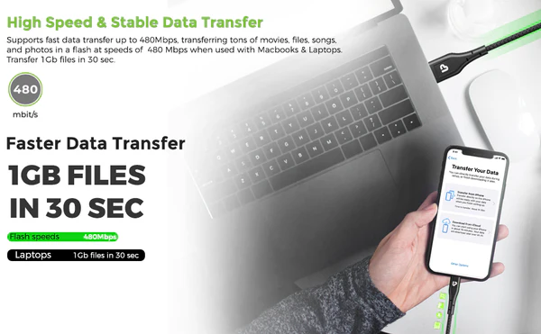 Supports fast data transfer up to 480Mbps, transferring tons of movies, files, songs, and photos in a flash at speeds of 480 Mbps when used with PC’s, laptops. Transfer 1Gb files in 30 sec.
