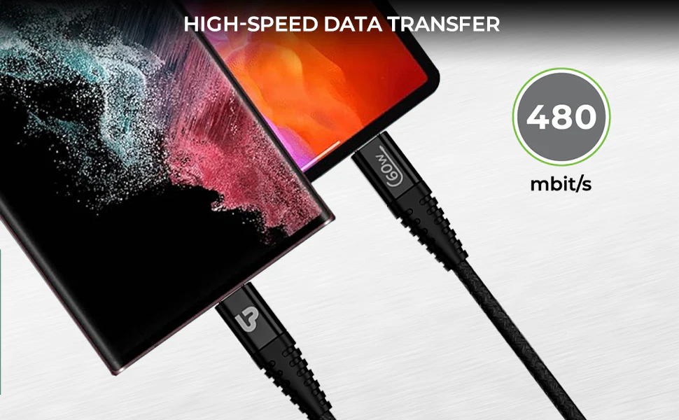 Introducing the UltraProlink Zoom PD 60, a 60W USB-C to USB-C fast charging cable, designed for the modern tech-savvy user. This durable, nylon-braided cable is your ultimate companion for powering up smartphones, pads, laptops, and more. Engineered for fast, easy charging, the UltraProlink delivers up to 60W of power, ensuring your devices like Macbooks, iPads, Galaxy S23, Google Pixel, and iPhone 15/14 reach full battery swiftly. With USB 2.0 compatibility, enjoy data sync speeds of 480mbps, making file transfers quick and efficient. Its robust design is bend-tested 15,000 times, promising longevity and reliability. Whether you're charging your latest iPhone or syncing data between devices, this cable's universal USB-C interface guarantees wide compatibility and ease of use. Backed by a 12-month warranty, the UltraProlink Zoom PD 60 is the perfect blend of speed, durability, and compatibility, making it an essential accessory for all your charging and data transfer needs.